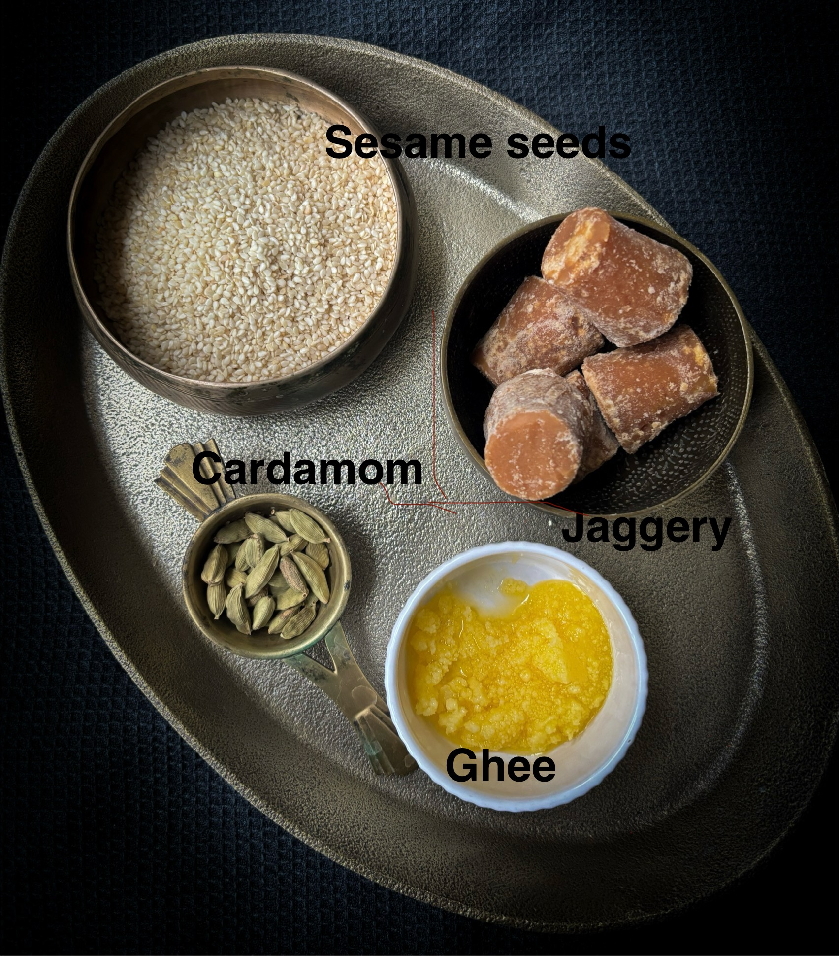 Sesame seeds and jaggery are packed with many nutrients and health benefits.. Sesame seeds are a great source of calcium and magnesium, promoting strong and healthy bones. Jaggery is also rich in iron, magnesium and it supports red blood cell production.  It is a healthy alternative to refined sugar laden sweets.